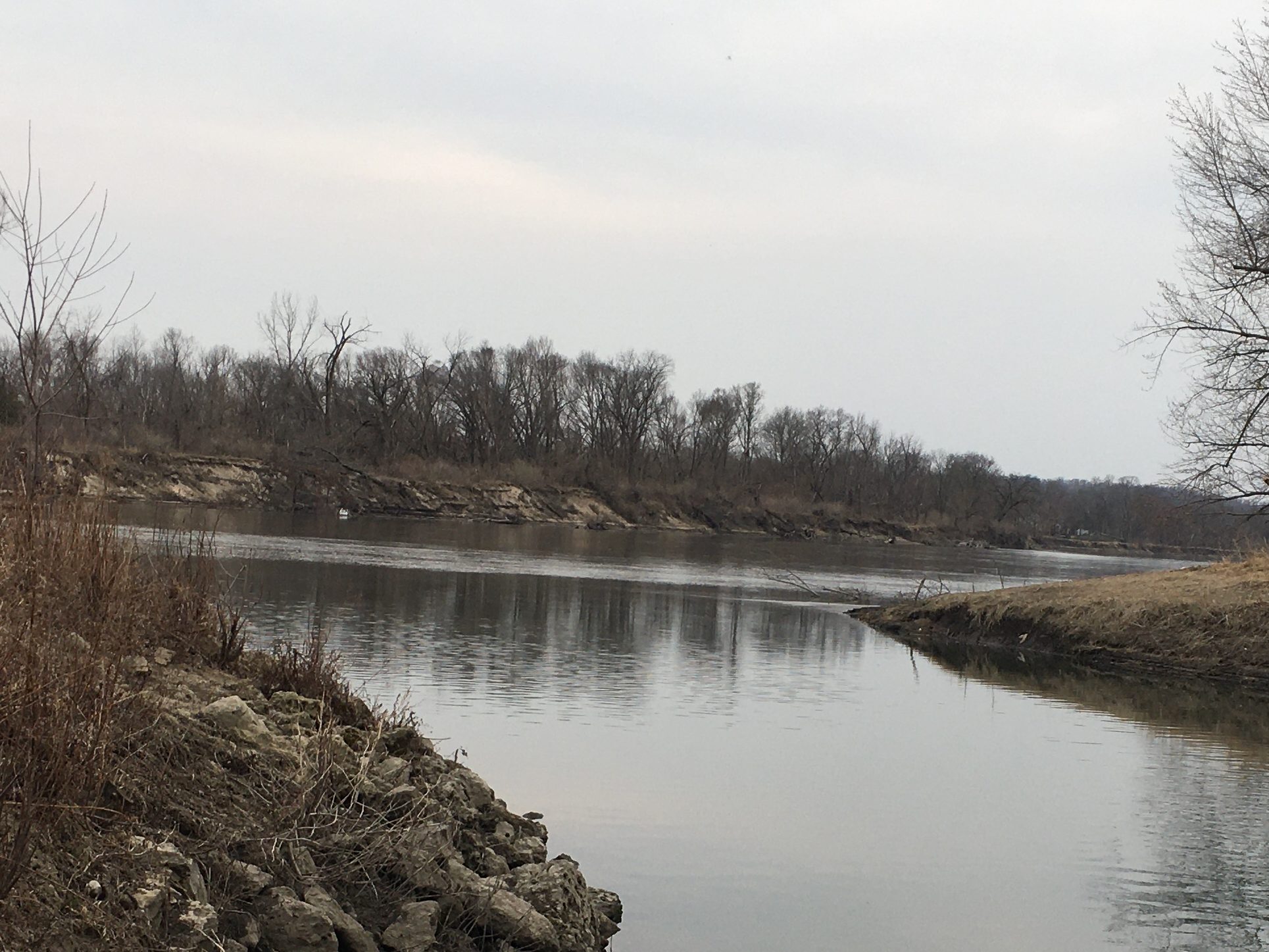 The bank is encrusted by rip rap for stability. Both the Union Pacific Railroad and Otis Road cross Indian Creek within view of the confluence. I swim the shallow pools of Indian Creek on hot August days and tap the sugar maples along its banks in February. I have watched the belted kingfisher nest in its banks and rescued fawns from its floodwaters. Every spring, and sometimes in the summer, I watch the water slowly edge out of its banks, submerge the land, and creep across Otis Road. Indian Creek is where I met my first gar and taught my nephew how to fish.