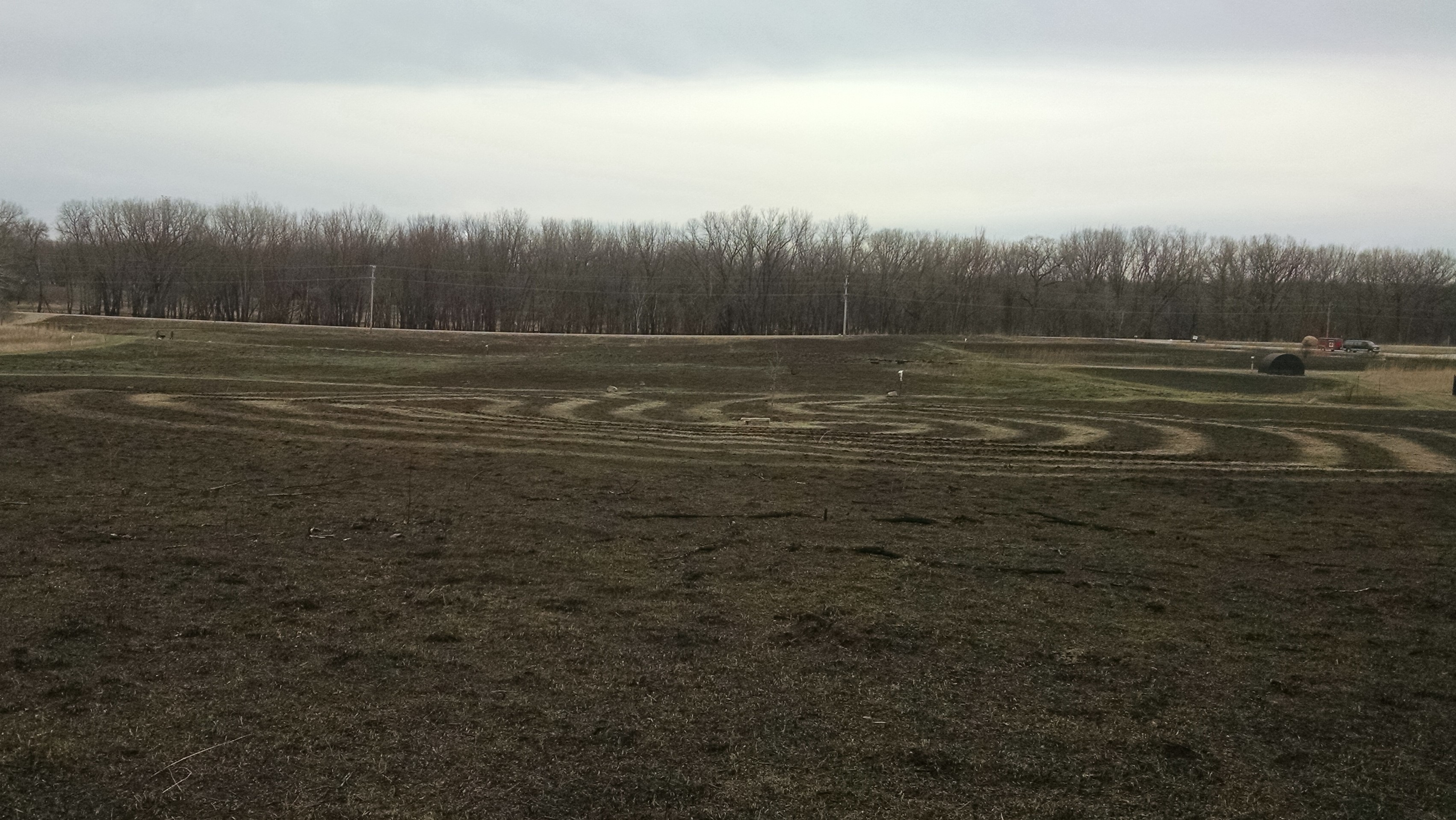 I designed and built my first labyrinth before I learned what a seed labyrinth was, and before I learned how to draw a seven circuit labyrinth. The double spiral reflected the natural form of the ubiquitous land snail shells and the duality of nature. It was loved by the community, but in 2016 we mowed it down to lay out Amazing Space. While the site is still there (the area was peripheral to the project), the tallgrass prairie has been allowed to regrow. It is time to create a new labyrinth.